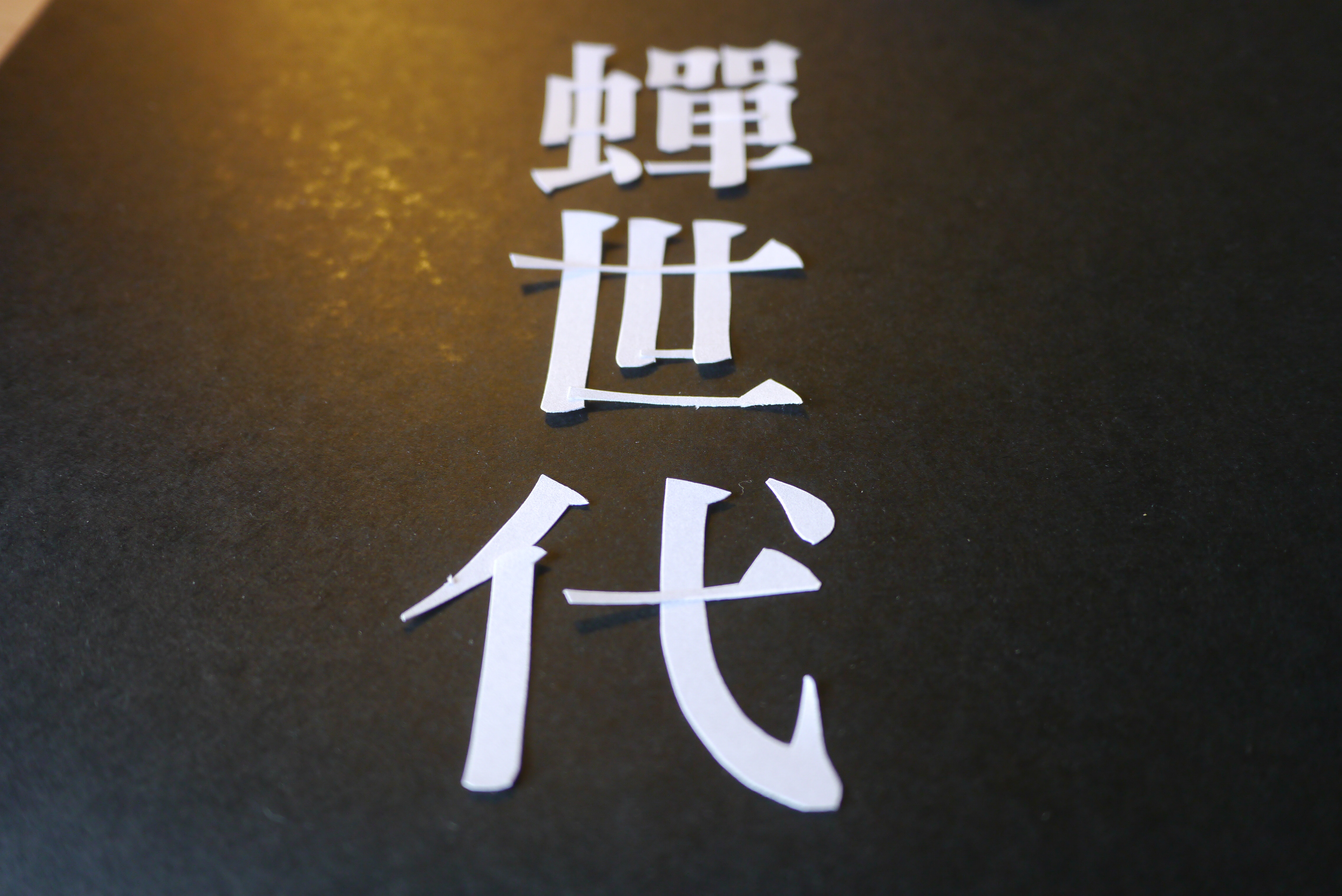 蟬世代的主角們都是掙扎中的年輕音樂人或是小漫畫家,讓我想到龐克年代的DIY刊物 (zines)。那時候排版沒有電腦軟體可用,大家都是用剪刀、膠水、打字機與影印機這些隨手可得的道具製作內容。我想在標題上重現那種天真的粗糙感,這是光靠電腦無法重現的。我把粗明體字體印出來,然後重新排列,另外也把字體印出來,用水暈開,再把字重新掃進電腦。
